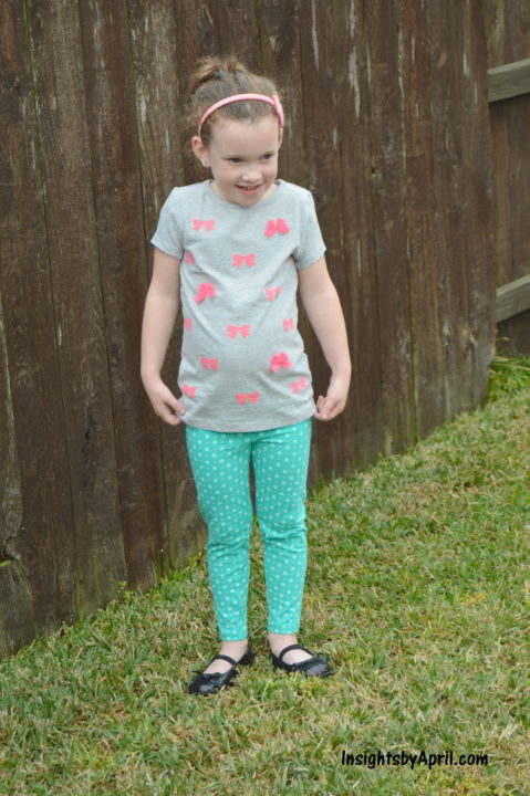 My daughter was ready to see what they had for her. She sure is becoming such a little fashionista. One day she has to match head to toe, the next day she is completely mismatched. It is quite funny and cute. There were lots of dresses that I loved and wanted to get her, but her mood that day was very selective. She loves stretchy pants so I was sure that she would pick out a bunch of their darling styles, but she would only get one. And they were on clearance so a bonus there.