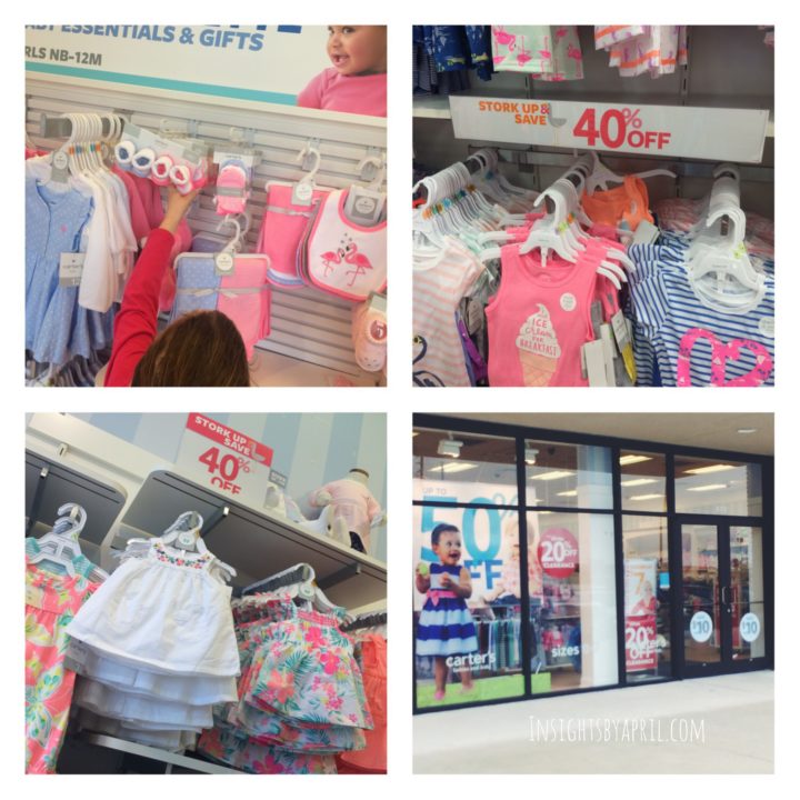 have always loved Carter’s for clothes for my kids. I bet you didn’t realize that they have clothes up to size 12??!! Yep, Carter’s clothes are not just for babies. We visited our local Carter’s and the kids and I had so much fun browsing the new Spring fashions. And they always have some fabulous sales going on. My sister is about to have a baby girl this summer, so we searched through lots of the baby clothes first. Such darling darling outfits that aren’t too over the top girly, but are still so fresh and dainty.