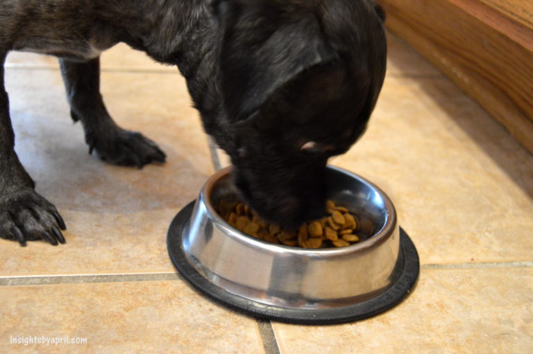 She starts the day with a bowl of her new food, Purina ProPlan Bright Mind that we picked up at PetSmart.