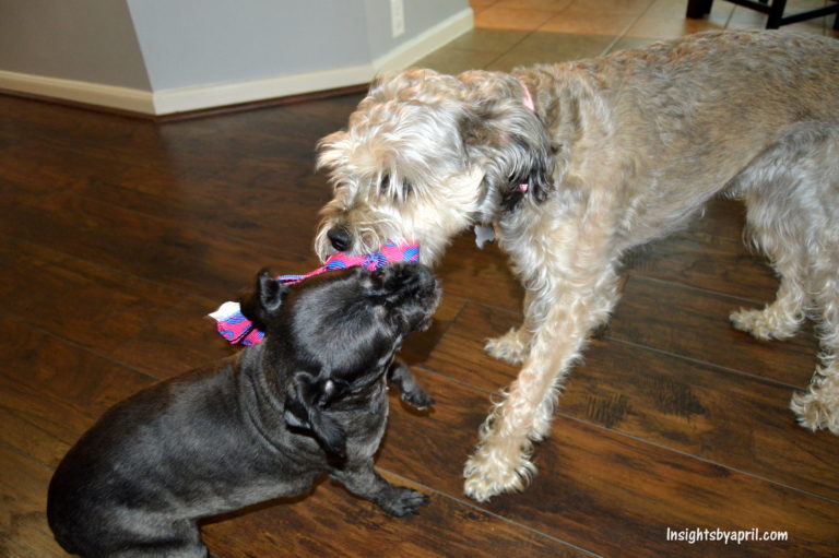 My parents had gone out of town and Miss Bean is used to sleeping a lot and being home by herself, but when she stays with us we get up early for school and our dog who is only 18 months+ likes to play. The only thing is our dog doesn’t realize she is quite so big compared to Miss Bean who is only about 14 pounds versus Cinder 40. Miss Bean can sure hold her own though when they decide to play and race around the house.