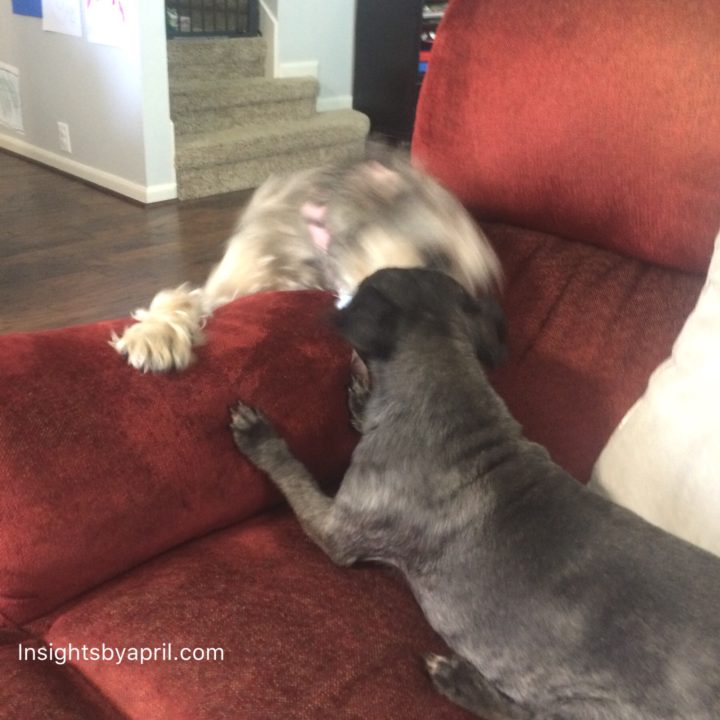 Miss Bean on many occasions would outsmart Cinder by not running in complete circles or getting to an angle that Cinder could not reach her. That just goes to show that Miss Bean’s mind is getting sharper and she is remembering some of the old tricks she used to pull when other dogs were around. It is just so funny to watch them play together and rough house. Miss Bean is quite fiesty these days, that or she is just a grumpy old lady haha.