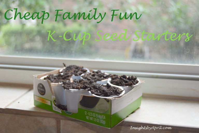 Now we have 6 K-cup seed starters sitting in our Kitchen window, waiting to sprout before we replant out in the big garden. I can’t wait to see if they will grow in to full plants later on 🙂