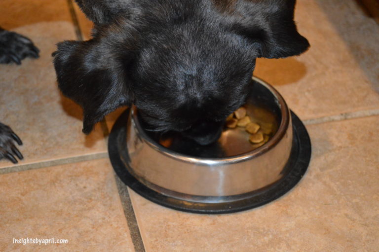 Now when switching foods it is best to make a gradual switch so as not to upset the dog’s tummy. We started by just mixing a small amount of the Purina ProPlan Bright Mind with her old food then over a week would add in more of the Bright Mind in and less of her old food until we made a full switch over. Miss Bean is never one to leave her bowl sitting with food in it for too long. She took to the new food quite well. It was almost impossible to get a picture of her eating the food since she ate it down in less than 30 seconds!! I take that as a sign that she likes the new food.