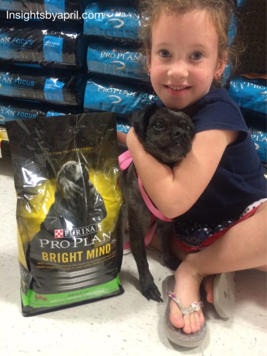 We headed to Petsmart and took Miss Bean along for a little ride. She hinted that she wanted a few new toys while there since our dog Cinder had chewed most of them up! We got some Purina ProPlan Bright Mind small breed formula which has the nutrients and ingredients an older dog needs to help with their cognitive skills. We wanted to see if it would help her want to be like her young self again.