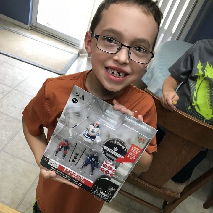 We also got a set of their mini hockey players that comes with a game and playing pieces. Kids(adults) can collect all of their favorite players and create their own hockey game. My nephews are big hockey fans so we gave him the set with his favorite player Ovechkin.