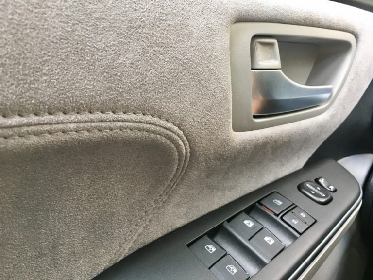 This XSE model has leather as well as suede throughout. While I liked the suede on the doors, I wasn’t the biggest fan of it being in the center of the seats where most things gets spilled and dingy. Especially when the suede is a lighter grey, that just doesn’t pair well with kids.